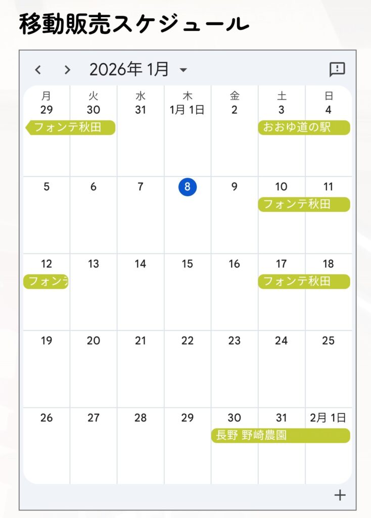 1月10日からフォンテ秋田前での販売に寒い中沢山のお客様にお越しいただきありがとうございます🙇